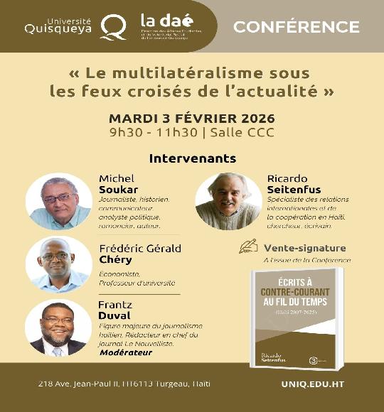 Le Rectorat et la Direction des Affaires Étudiantes et du Volontariat Social (DAE) de l’Université Quisqueya vous invitent à une conférence autour du thème :