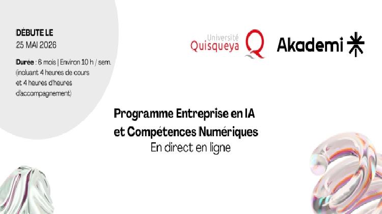 À l’issue de la formation, les participants obtiennent un certificat professionnel conjointement validé par l’Université Quisqueya et Akademi , attestant d’un niveau de formation rigoureux conforme aux standards internationaux. Le parcours IA, en particulier, renforce la culture en intelligence artificielle des dirigeants, les cadres de gouvernance des données ainsi que leur capacité à piloter des initiatives numériques à l’échelle de l’organisation.