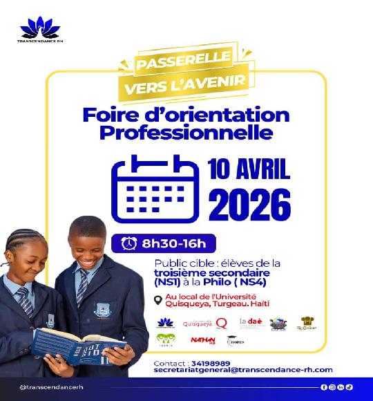 La Direction des Affaires Étudiantes et du Volontariat Social (DAÉ) de l’Université Quisqueya, en partenariat avec Transcendance RH, vous invite à participer à une journée d’orientation professionnelle destinée :